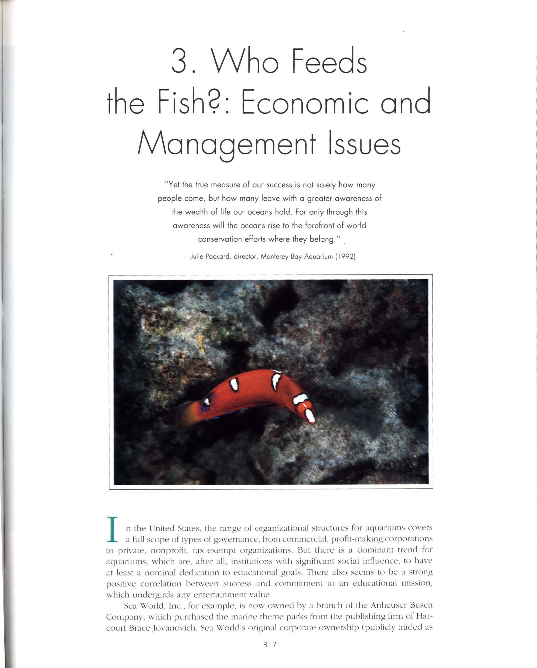 Presents operating aquariums and describes methods of research and management as well as educating the public about the oceans and its marine life in order to develop a sense of stewardship for this part of the natural world.. Another role many provide is rescue and rehabilitation of marine animals. There is also information about the natural history of popular aquarium animals such as whales, sharks, otters, corals, penguins, and fishes. Profiles aquariums from coast to coast and provides a directory of aquariums around the world. 100 full-color photographs plus historical photographs and prints, 192 large-format pages, index.