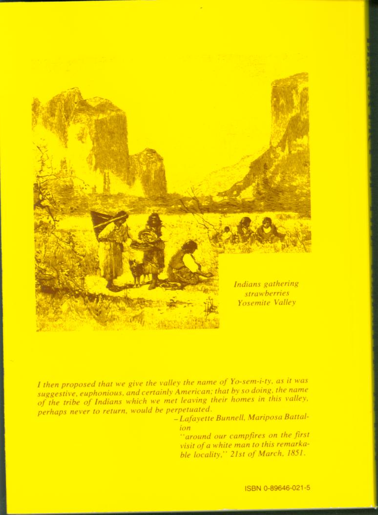 First published in 1880, this is the primary account of how Yosemite Valley came to be "discovered" by the white race. Of course, the Indians knew it was there; they were living in it when the battalion came to roust them out. The valley had been seen from its rims and from afar before this trip, but this was the first recorded entry and exploration. Bunnell proposed the name of the Indian tribe for the valley, "as it was suggestive, euphonious, and certainly American; that by so doing, the name of the tribe of Indians which we met leaving their homes in this valley, perhaps never to return, would be perpetuated." Foreword by former chief park naturalist William R. Jones.